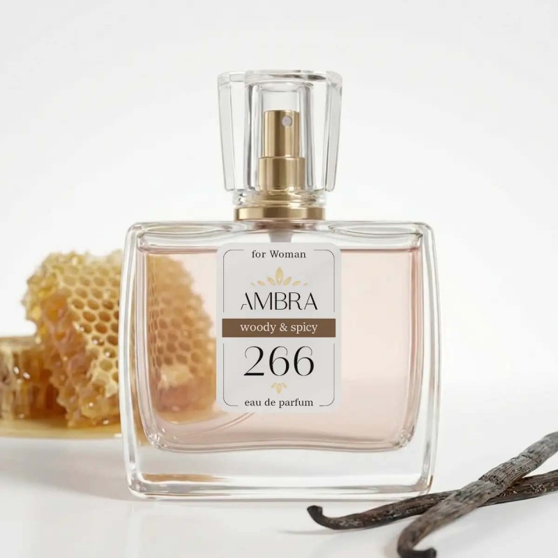 Współczesna kobieta jak nigdy dotąd może podkreślać dualizm swojej natury. Zapach Ambra 266 bardzo jej w tym pomaga. Jest inspirowany tradycją, kojarzy się z ciepłem domowego ogniska. Jednocześnie ucieleśnia przyszłość poprzez swoją unikalną kombinację. Orientalno-drzewiasta baza to sandałowiec, paczula i piżmo. Wzmacnia je lekki i tajemniczy jaśmin, czerwone goździki, róża i słodki miód. Przyjemny i uwodzicielski zapach doskonale sprawdza się w wersji dziennej, choć można go stosować również na wieczorne wyjścia.
