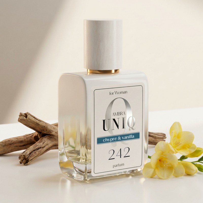 Ambra UNIQ to prawdziwe perfumy o wyjątkowo wysokim zaperfumowaniu – aż 30%. Taka koncentracja sprawia, że zapach wybrzmiewa pełniej, jest bardziej skoncentrowany i utrzymuje się znacznie dłużej, często przy mniejszej liczbie aplikacji. Kompozycja pozostaje wyczuwalna na skórze i ubraniach przez wiele godzin, a dzięki starannie dobranym nutom zapachowym perfumy 242. Ambra UNIQ do złudzenia przypominają perfumy Si. Co ważne, zaperfumowanie damskich perfum UNIQ przewyższa klasyczne wody perfumowane dostępne w markowych perfumeriach, co przekłada się zarówno na intensywność, jak i imponującą trwałość samego zapachu.