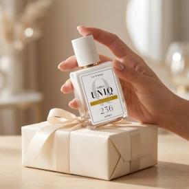 Ambra UNIQ to prawdziwe perfumy o wysokim zaperfumowaniu na poziomie, aż 30%. Takie zaperfumowanie przekłada się na bardziej skoncentrowane wybrzmienie i dłuższą trwałość – często także przy mniejszej liczbie aplikacji. Zapach dłużej utrzymuje się na skórze i ubraniach, a dzięki staranie dobranym nutom zapachowym - 236. Ambra UNIQ przypominają perfumy CK IN2U For Her. Zaperfumowanie perfum UNIQ jest wyższe niż klasycznych wód perfumowanych dostępnych w markowych perfumeriach. Przekłada się to zarówno na intensywność samego zapachu, jak i na jego długą trwałość.