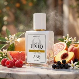 Perfumy 236. Ambra UNIQ wyróżniają się wysokim stężeniem olejków zapachowych - aż 30%. Dzięki temu zapach jest bardziej skoncentrowany, trwalszy i często intensywniejszy już przy mniejszej liczbie psiknięć. Kompozycja nut zapachowych pozostaje taka sama jak w perfumach 236.Ambra Classic, jednak w wersji UNIQ zyskuje większą głębię i moc.