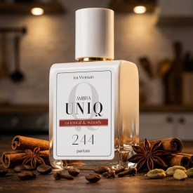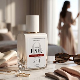 Ambra UNIQ to prawdziwe perfumy o wyjątkowo wysokim zaperfumowaniu – aż 30%. Taka koncentracja sprawia, że zapach wybrzmiewa pełniej i utrzymuje się znacznie dłużej, często przy mniejszej liczbie aplikacji. Kompozycja pozostaje wyczuwalna na skórze i ubraniach przez wiele godzin, a dzięki starannie dobranym nutom zapachowym perfumy 244. Ambra UNIQ przypominają perfumy Euphoria. Zaperfumowanie damskich perfum UNIQ przewyższa klasyczne wody perfumowane dostępne w markowych perfumeriach, co przekłada się zarówno na intensywność, jak i imponującą trwałość samego zapachu.