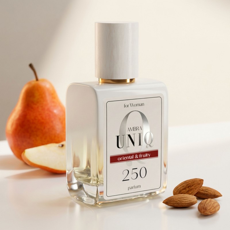 Perfumy 250. Ambra UNIQ wyróżniają się podwyższonym stężeniem olejków zapachowych - aż 30%, co sprawia, że zapach jest bardziej skoncentrowany, trwalszy i często intensywniejszy już przy mniejszej liczbie psiknięć. Kompozycja nut zapachowych pozostaje taka sama jak w perfumach 250. Ambra Classic, jednak w wersji UNIQ zyskuje większą głębię i moc.