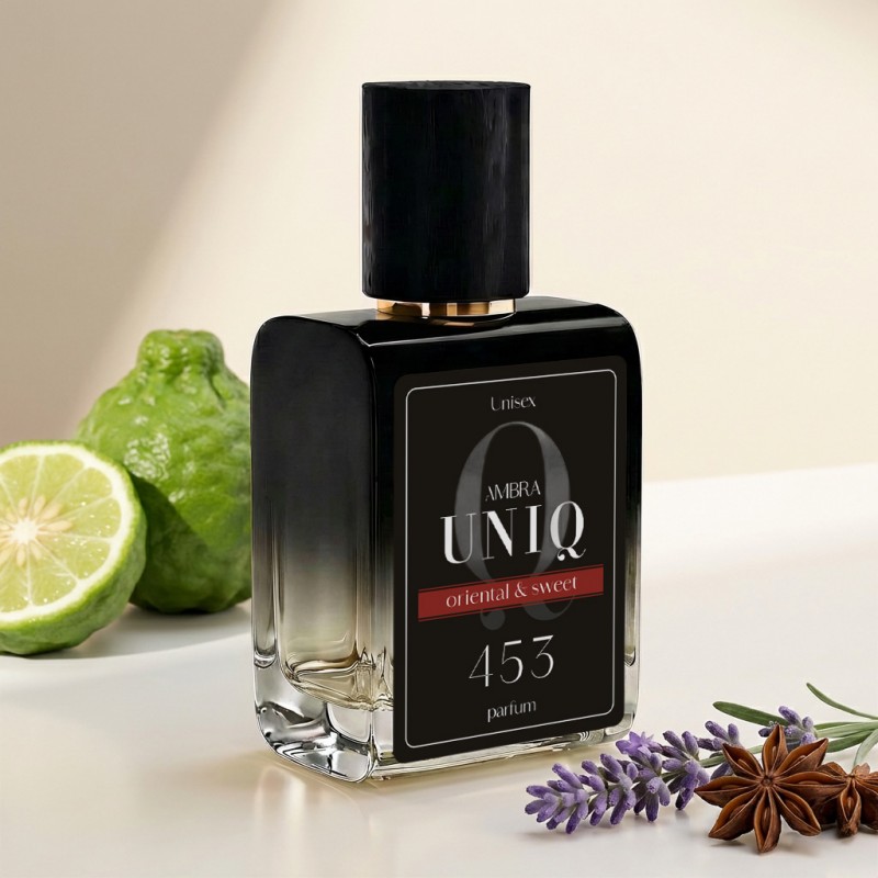 Perfumy 453. Ambra UNIQ wyróżniają się wysokim stężeniem olejków zapachowych - aż 30%, co sprawia, że kompozycja jest bardziej skoncentrowana, długotrwała i wyraźna już przy niewielkiej ilości aplikacji. Zachowują one tę samą paletę nut zapachowych co 453. Ambra Classic oferując jednak intensywniejsze i pełniejsze doznania zapachowe.